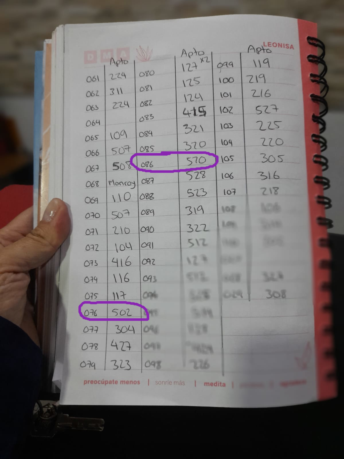Los n煤meros ganadores son los 086 y 076 que corresponden a los apartamentos que reflejamos en la siguiente lista manual: